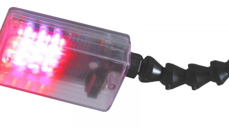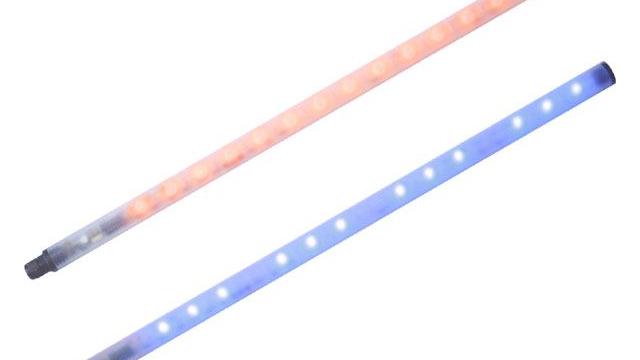 Blaue und weiße LEDs für Nachtbeleuchtung, dimmbar. Spotversion mit flexibler, drehbarer Aufhängung